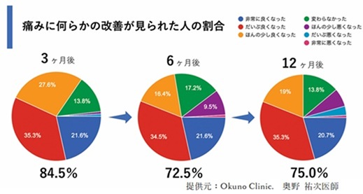 約75%の方が「痛みや症状に何らかの改善があった」 と回答しています。