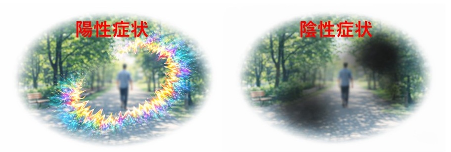 - 陽性症状:本来ないはずの光やギザギザが見える